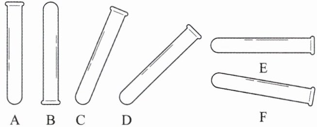 6. 试管是化学实验中最常用的玻璃仪器。在不同的实验中,试管的放置方法是不同的。最常见的放置方法有下图中的六种。请选择下列化学实验基本操作中试管的放置方法。