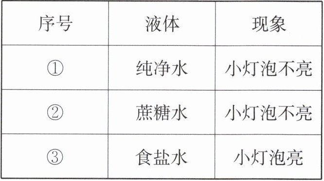(2) 请从微观角度解释蔗糖水不导电,食盐水能导电的现象:______。