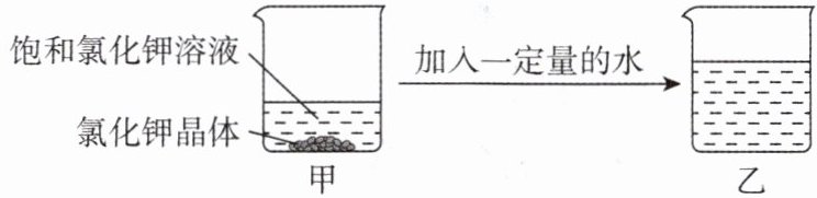 2. 一定温度下,向图甲烧杯中加入一定量的水,得到如图乙所示的溶液。图乙中的溶液与图甲中的溶液相比,下列判断一定正确的是( )。