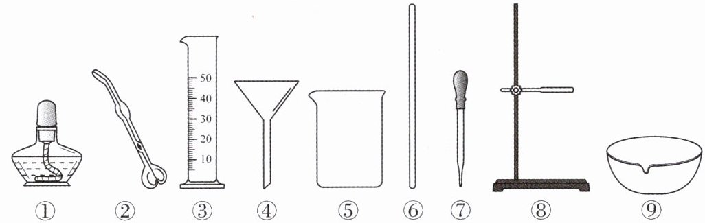 (2)上述仪器中可用来测量液体体积的仪器是____(填仪器序号,下同),向试管中滴加少量液体,用图中仪器____。
