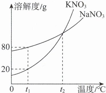 9. 右图为$KNO_3$和$NaNO_3$的溶解度曲线。下列说法正确的是( )。