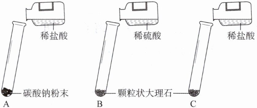 12. 某实验小组的同学用碳酸钠粉末、颗粒状大理石、稀盐酸、浓盐酸、稀硫酸这几种药品,探究哪两种药品的反应适合在实验室制取$CO_{2}$。请你参与下列的探究并回答问题。