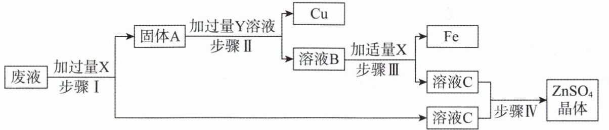14. 为了防止环境污染,工厂废液需经过处理达标后才能排放。某电镀厂为了减少对水的污染并节约成本,从排放的废液(主要含$ZnSO_{4}$、$FeSO_{4}和CuSO_{4}$)中回收金属铜、铁以及工业原料硫酸锌,设计了如下图所示的工艺流程,请据图回答下列问题。