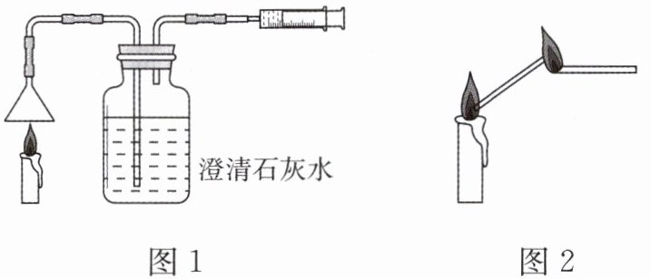 【问题一】蜡烛燃烧产生的二氧化碳用澄清石灰水检验现象不明显,于是设计图1实验来证明。