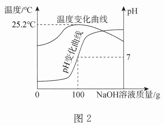 10. 某化学兴趣小组利用数字化实验装置(下页图1)探究中和反应,在烧杯中加入100g未知浓度的稀硫酸,向其中滴加4%的氢氧化钠溶液,实验数据经处理后绘制出图像(下页图2)。请分析图像完成下列问题。