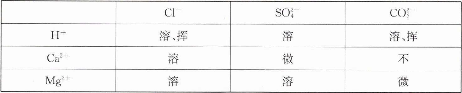 7. 部分盐和酸的溶解性(20℃)如下表所示。下列说法不正确的是( )。