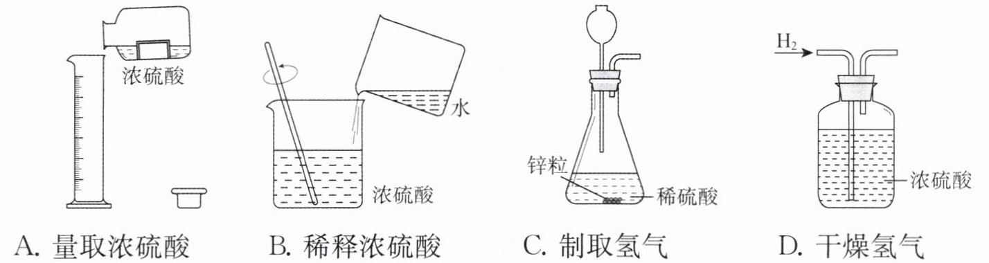 3. 在配制稀硫酸并制备氢气的实验中,下列装置和实验操作正确并规范的是( )。