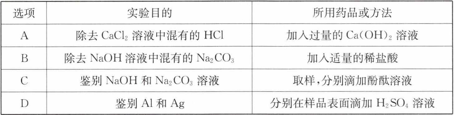 |C|鉴别 NaOH 和$ Na_2CO_3$溶液|取样,分别滴加酚酞溶液|