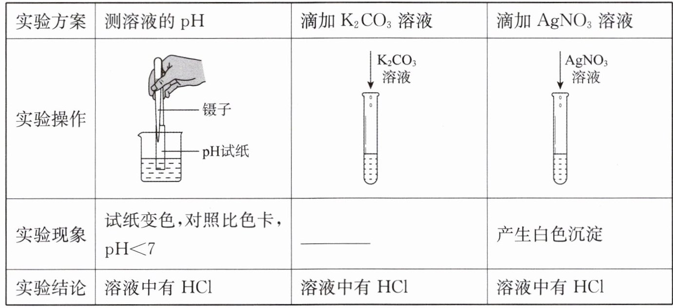 |实验结论|溶液中有 HCl|溶液中有 HCl|溶液中有 HCl|