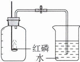 5. 某班同学用右图所示装置测定空气中氧气的含量。先用弹簧夹夹住橡胶管,点燃红磷伸入瓶中并塞上瓶塞。待红磷熄灭并冷却后,打开弹簧夹,观察瓶内水面变化情况。实验完毕,甲同学的瓶内水面上升明显小于瓶内空气体积的1/5。下列对这种现象解释合理的是( )。