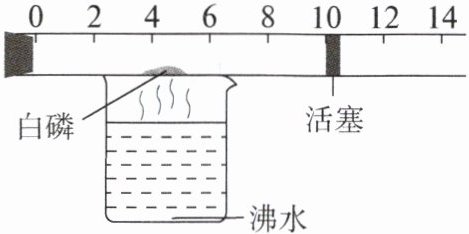 6. 下图是一个具有刻度和可滑动活塞的玻璃容器,其中有空气和足量的白磷(白磷在40℃时可以燃烧),将它放在盛有沸水的烧杯上方,进行实验。请完成实验报告。