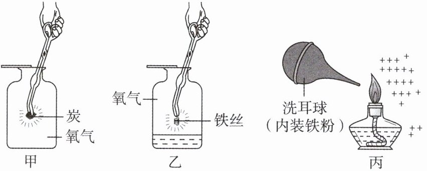 ③ 铁丝在空气中加热并不燃烧,但图乙和图丙的操作中均实现了铁的燃烧,乙中铁丝是被______引燃的,铁丝伸入集气瓶的最佳时机是______,而丙中铁粉燃烧则主要是因为______。