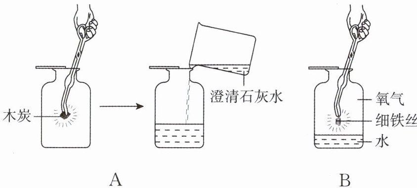 (1)碳+氧气$\xrightarrow{点燃}$二氧化碳 澄清石灰水变浑浊 (2)防止高温熔融物溅落炸裂集气瓶底 铁+氧气$\xrightarrow{点燃}$四氧化三铁
