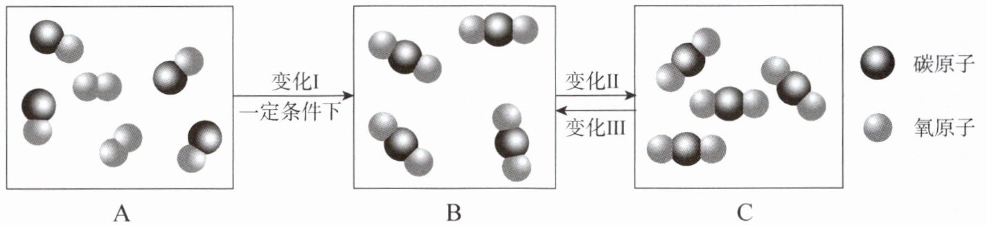 (1) A、B、C中表示混合物的是______(选填“物质A”“物质B”或“物质C”)。上述变化Ⅰ、Ⅱ和Ⅲ中,发生化学变化的是______;从微观角度分析,化学变化与物理变化的本质区别是______。