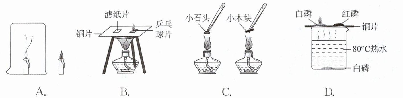 7. 下列探究燃烧条件的实验中,只能得出“燃烧需要氧气”的结论的是( )。