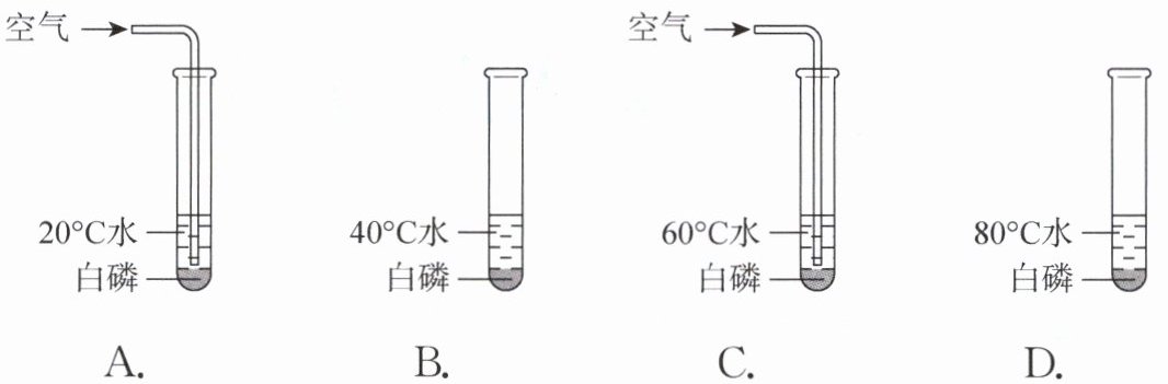 4. 已知白磷的着火点为$40^{\circ}C$,下列实验中白磷能够燃烧的是( )。