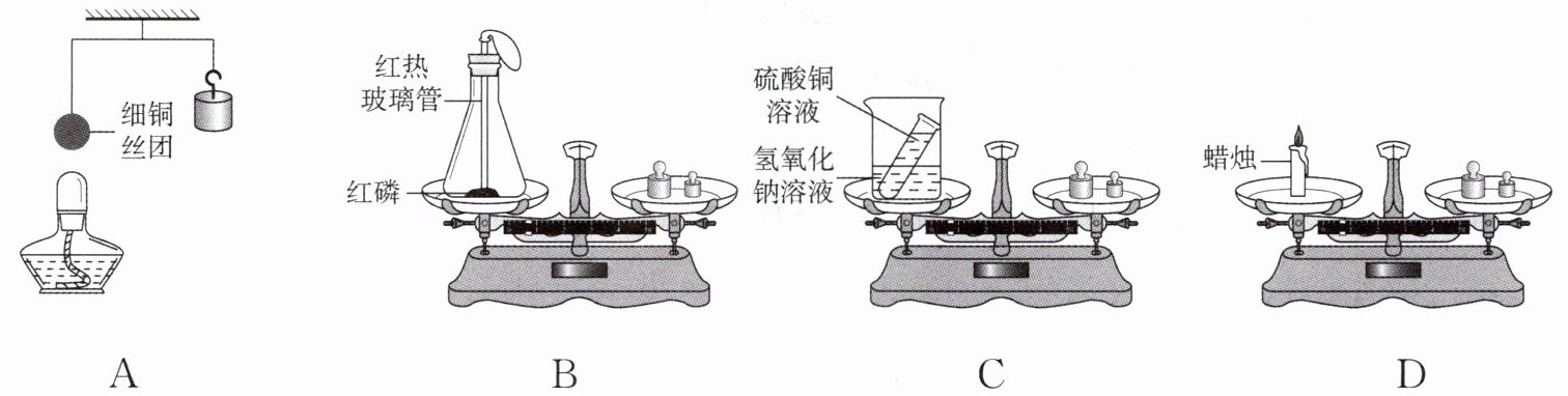 (2) $B$、$C$、$D$三组实验充分反应并冷却至室温后,天平不能平衡的是______(填字母)。