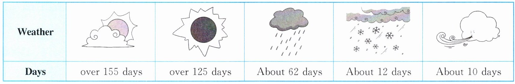 1. About 62 days. 2. People can know what to wear. 3. It's meaningful. Because we can arrange our daily life according to the weather report.(言之有理即可)