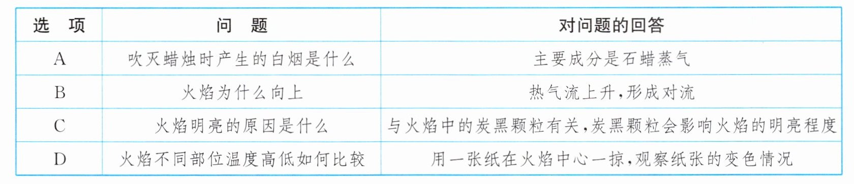 13. 表中列举了法拉第《蜡烛的故事》中涉及的部分问题及对问题的回答,其中“对问题的回答”属于“确定实验方案”的是 (