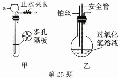 25. (10分)化学兴趣小组设计了如图所示的两个装置,以过氧化氢溶液为原料制备氧气,可灵活控制气体的产生与停止。
