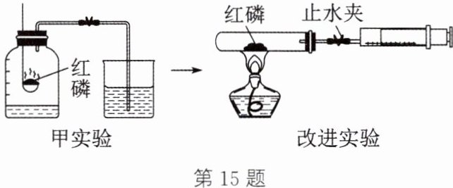 15. (创新实验)为测定空气中氧气的含量,某同学将甲实验进行改进,改进后的实验装置如图所示(部分夹持装置已省略),实验时引燃红磷后便熄灭酒精灯。下列有关改进实验的说法不正确的是(