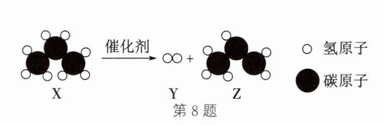 8.(2023·安徽改编)口罩中的熔喷布具有过滤病毒的作用,Z是合成熔喷布的主要原料,由X制备Z的微观示意图如图所示。下列说法正确的是 (