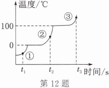 12. 一定条件下在密闭容器里加热冰,温度和时间的关系如图所示,①②③表示水在不同时刻的存在状态。下列判断正确的是 (