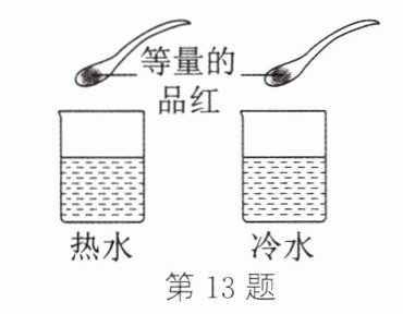 13. 按如图所示进行实验。当观察到热水中大面积变成红色时,冷水中只有品红周围变成红色。下列对该现象的微观解释合理的是 (