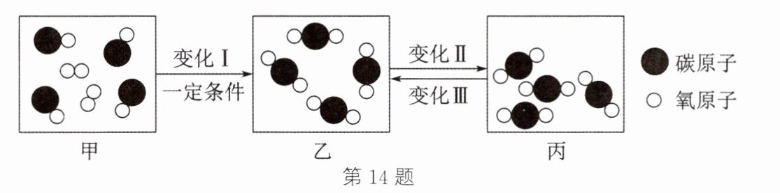 14. 如图是某密闭容器中物质变化过程的微观示意图。下列说法正确的是 (