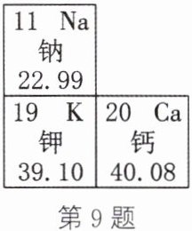 元素的相对原子质量最小。(3)钠、钾和钙在元素分类中都属于