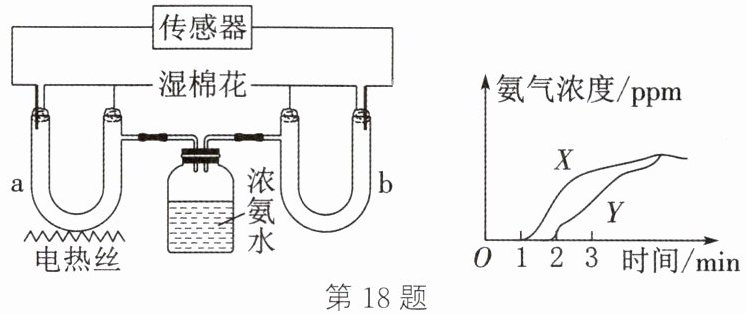 18.(创新实验)某同学为了探究微观粒子的性质,按图示进行实验,并借助传感器画出U形管a、b中氨气浓度随时间变化的曲线,下列关于该实验的说法中不正确的是(