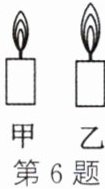 6. (2024·贵州改编)燃烧是常见的化学变化。科学利用和控制燃烧为人类服务,可推动社会的可持续发展。蜡烛燃烧:用燃着的火柴将图中相同大小的两支蜡烛点燃。