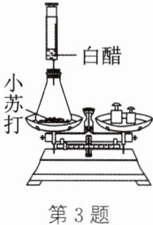 3. (2024·山西)在一次实验课上,同学们通过小组合作,完成了对密闭容器中少量小苏打与少量白醋反应的质量测定(如图所示)。以下分析正确的是(