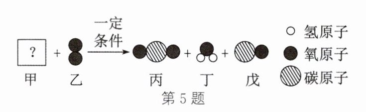 5.(2023·随州)纯净物甲是一种绿色能源,其相对分子质量为46。在一定条件下,一定质量的甲与8.0 g乙恰好完全反应,生成4.4 g丙、5.4 g丁和2.8 g戊。反应的微观示意图如图,下列有关说法错误的是 (