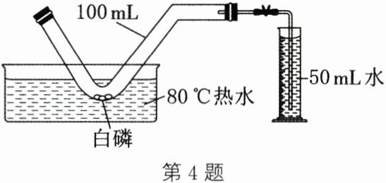 4. (2024·姑苏校级段考)化学兴趣小组设计V形管进行空气中$O_2$含量的测定(白磷燃烧所需最低温度为40℃)。下列关于该实验的说法不正确的是(