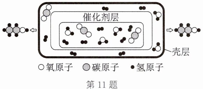 我国科研团队研发了一种纳米“蓄水”膜反应器(如图所示),内部封装了特定催化剂,该催化剂能够实现在温和条件下(3 MPa,240℃)二氧化碳近 100%高效稳定转化。纳米“蓄水”膜反应器的壳层具有高选择性,反应后,能保证生成的水集中到内部而乙醇排出。