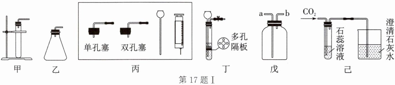 组装到甲或乙装置中。② 某同学用丁装置作为二氧化碳的发生装置(大理石放在多孔隔板上),制取二氧化碳的化学方程式为