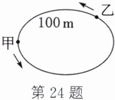 24. 如图,甲沿周长为300m的环形跑道按逆时针方向跑步,速度为a m/s,与此同时在甲后面100m处的乙也沿该环形跑道按逆时针方向跑步,速度为3m/s.设跑步的时间为t s.
