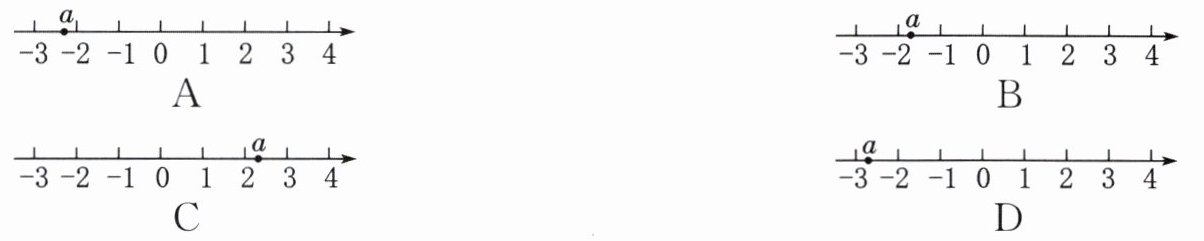 2. 若$a= -2\frac{1}{3}$,则有理数a在数轴上对应的点的位置是 (