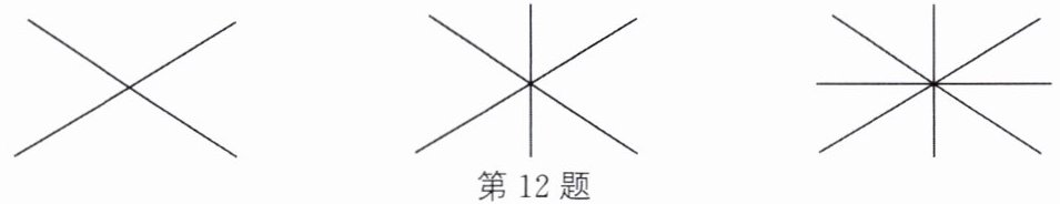 12. (新考法·探究题)如图,下列各图中,直线都交于一点,请探究交于一点的直线的条数与所形成的对顶角的对数之间的规律.