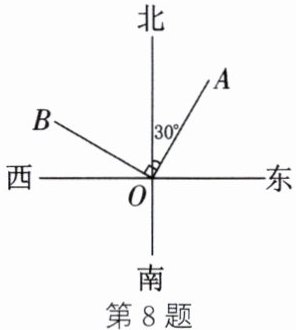 8. 如图,OA 是北偏东 30°方向的一条射线,若射线 OB 与射线 OA 垂直,则射线 OB 的方向是(