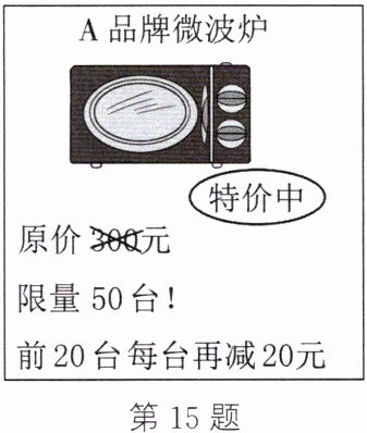 15.(新情境·现实生活)如图所示为某电器行的促销活动传单.已知促销第一天A品牌微波炉卖出10台,且其销售额为2300元.若活动期间此款微波炉总共卖出50台,则这些微波炉的总销售额为多少元?