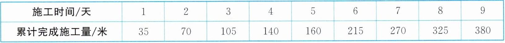 12. 甲、乙两个施工队分别从两端共同修一段长度为380米的公路.在施工过程中,乙队因技术改进而停工一天,之后加快了施工速度并与甲队共同按期完成了修路任务.下表是根据每天的工程进度绘制而成的.