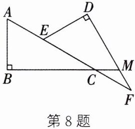 8. 如图,在△ABC和△EDF中,∠B= ∠D= 90°,点A,E,C,F在同一条直线上,AE= CF,BC的延长线交DF于点M,∠MCF= ∠F.求证:BC= DF.
