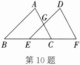 10. (2024·宿城段考)如图,B,E,C,F四点在同一条直线上,AB= DE,AC= DF,BE= CF,AC与DE相交于点G.
