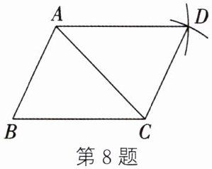 8. 如图,以△ABC的顶点A为圆心,BC长为半径作弧;再以顶点C为圆心,AB长为半径作弧,两弧交于点D,连接AD,CD.若∠B= 65°,则∠ADC的度数为______.