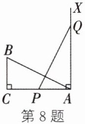 8. 如图,在Rt△ABC中,∠C= 90°,AC= 20,BC= 10,PQ= AB,P,Q两点分别在线段AC和过点A且垂直于AC的射线AX上运动,且点P不与点A,C重合. 当CP的长为______时,Rt△ABC≌Rt△QPA.