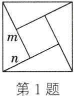 1. (新考向·传统文化)(2024·南通)“赵爽弦图”巧妙利用面积关系证明了勾股定理。如图所示的“赵爽弦图”是由四个全等直角三角形和中间的小正方形拼成的一个大正方形。设直角三角形的两条直角边长分别为 $ m $,$ n (m > n) $。若小正方形的面积为 $ 5 $,$ (m + n)^{2} = 21 $,则大正方形的面积为( )
