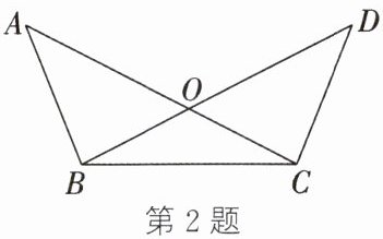 2. 如图,AC,BD相交于点O,∠A= ∠D,若再补充一个条件,使得△BOC为等腰三角形,则该条件不能是( )