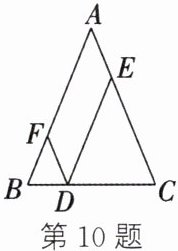 10. 如图,在△ABC中,AB= AC= 5,D是BC上的点,DE//AB交AC于点E,DF//AC交AB于点F,那么四边形AEDF的周长为.